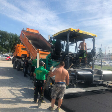 Mit unserer Asphaltkolonne bedienen wir Baustellen in ganz Baden-Württemberg. Unsere erfahrenen Fachleute sind Spezialisten für das Asphaltieren. Angefangen bei kleinen Außenanlagen bis hin zu größeren Objekten in Wohn- und Industriebau. Einen unterbrechungsfreien Einbau gewährleisten wir mit unseren neuen Asphaltfertigern. Selbst auf breitere Flächen erreichen wir so nahtfreie Asphaltschichten für maximale Haltbarkeit.